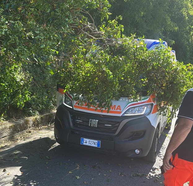 Cade un albero su un’ambulanza lungo la provinciale del Montalbano – Reportpistoia