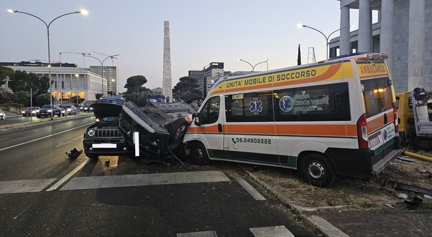 Incidente a Roma, ambulanza contro un’auto che vola sulla corsia opposta e colpisce un’altra vettura