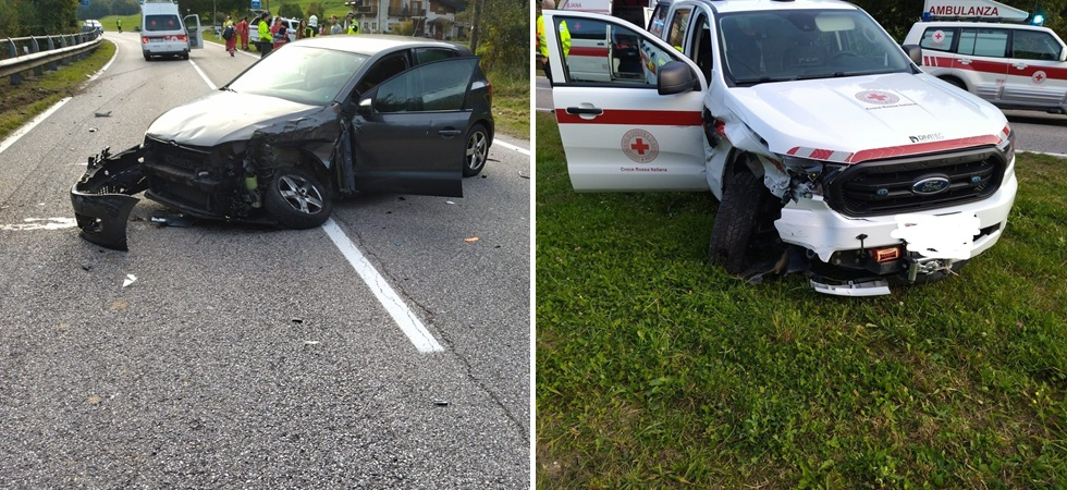 Violentissimo schianto, un’automedica si scontra con una vettura: stava intervenendo su un incidente motociclistico. Mezzi distrutti – il Dolomiti